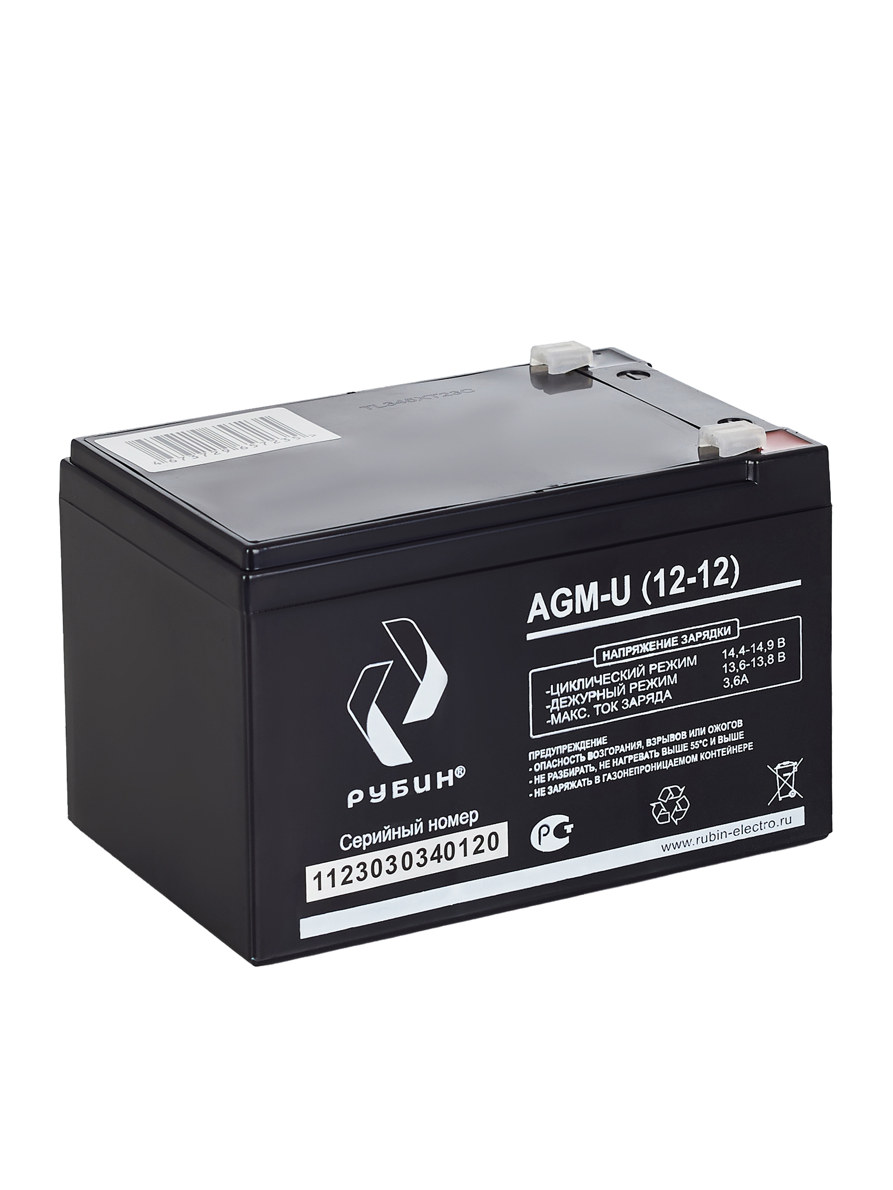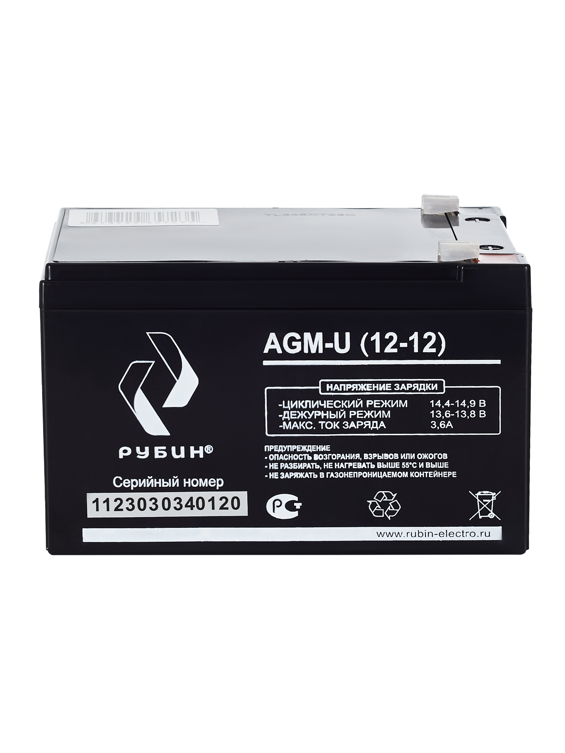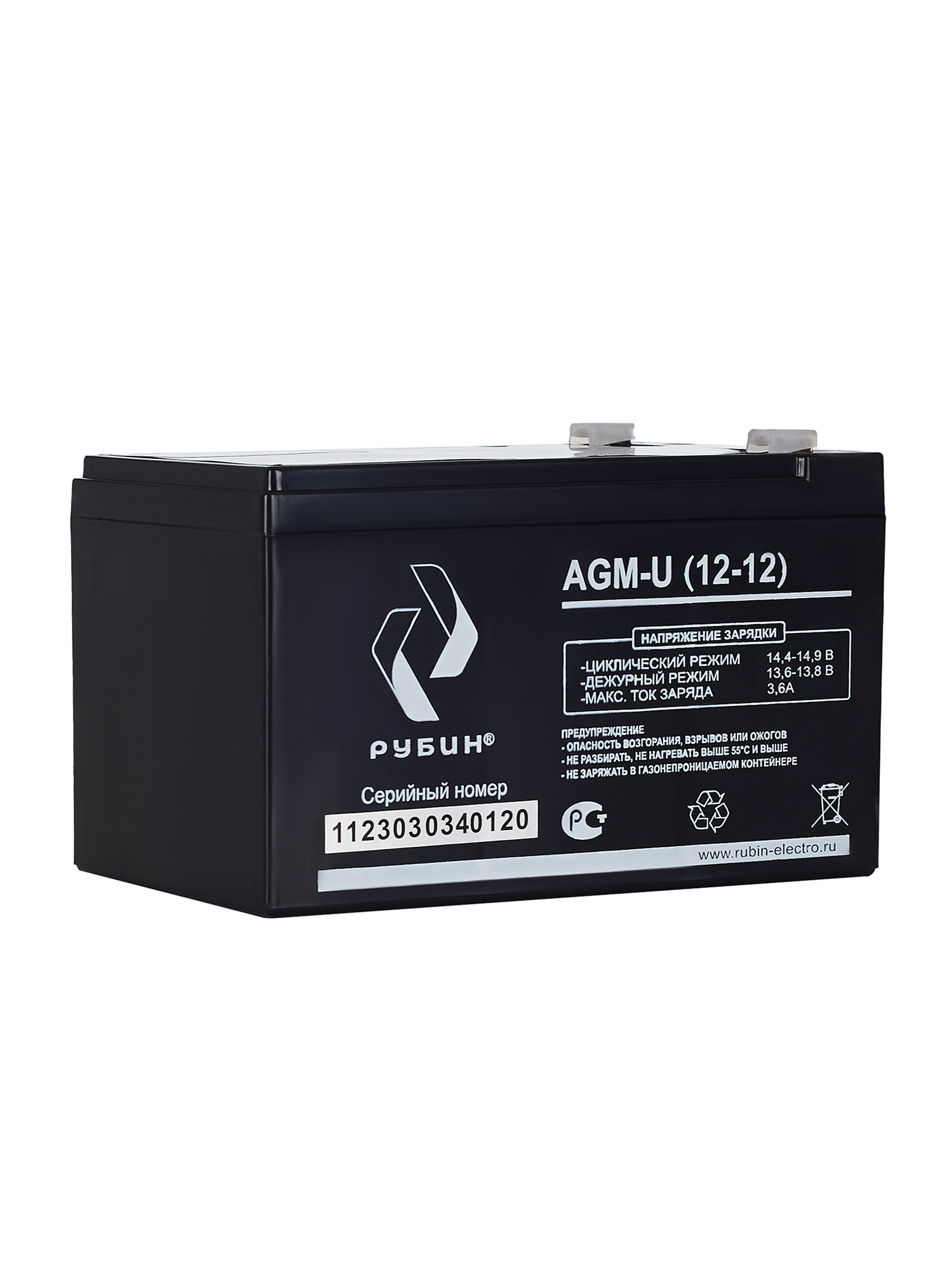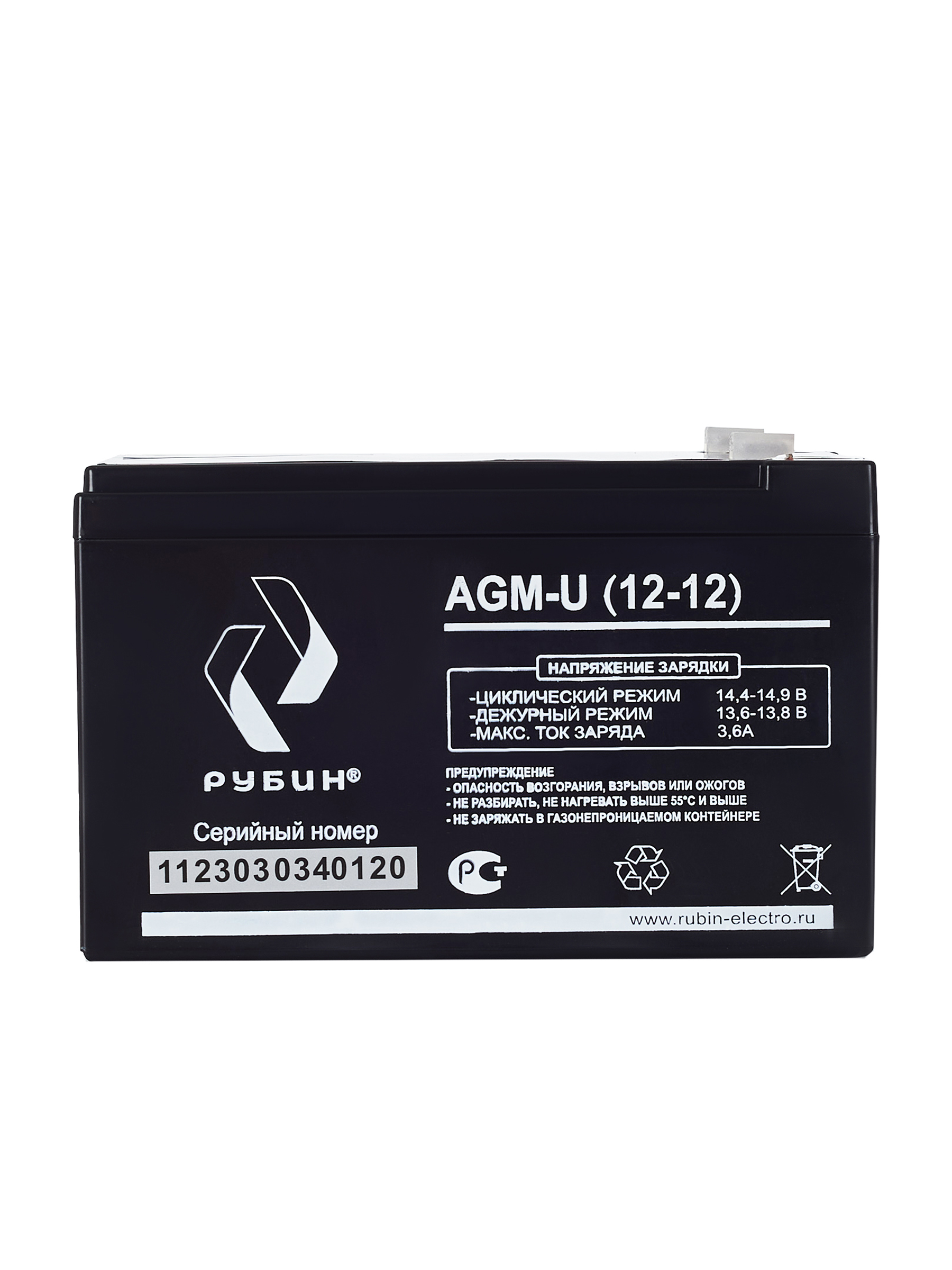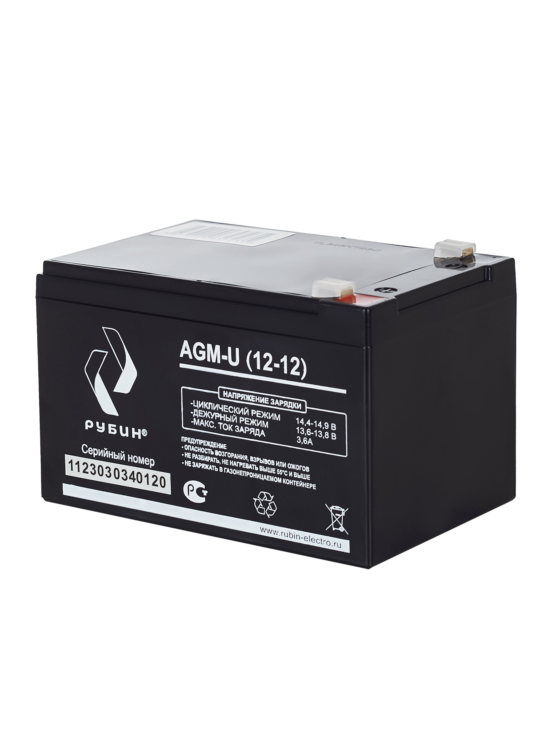 Аккумуляторная батарея Рубин 12V 12Ah AGM (3.4kg)** Батарея для источника бесперебойного питания (АКБ для ИБП и инверторов) Свинцово-кислотные аккумуляторы РУБИН созданы по технологии AGM, с абсорбированным электролитом. Аккумуляторы являются не обслуживаемыми, герметичными, а образующийся газ рекомбинируется. Корпус аккумуляторов РУБИН выполнен из высокопрочного ABS пластика, что вкупе с технологией AGM обеспечивает высокую устойчивость к возгоранию и взрывобезопасность. СФЕРЫ ПРИМЕНЕНИЯ: - Источники бесперебойного питания - Источники резервного энергоснабжения - Системы контроля и доступа - Аварийные и световые системы тревожного оповещения - Системы безопасности - Пожарные системы - Переносные и портативные приборы - Различные области приборостроения - Накопители солнечной и ветровой энергии Аккумуляторы обладают низким саморазрядом (до 2%). Рабочее напряжение 12 V. Оборудование присоединяется к аккумуляторам с клеммами F2. Срок службы АКБ зависит от количества циклов, глубины разрядов, температурного режима, напряжения заряда и других факторов. Если АКБ не эксплуатируется, рекомендуем заряжать АКБ по крайней мере раз в полгода. Эта мера нужна для «тренировки аккумуляторных пластин чтобы не было окисления» Гарантийный срок эксплуатации изделия устанавливается в размере 12-ти календарных месяцев со дня продажи. Перед использованием АКБ РУБИН для оптимизации работоспособности рекомендуем провести четыре цикла разряда/заряда. Аккумуляторная батарея Рубин 12V 12Ah AGM отвечает всем международным стандартам безопасности! Так же зарядное устройство может использоваться как : аккумулятор для детского электромобиля, аккумулятор для детского мотоцикла, аккумулятор для детского квадроцикла, аккумулятор для медицинского оборудования, аккумулятор для пожарной сигнализации, аккумулятор для аварийного освещения, аккумулятор для котла.
