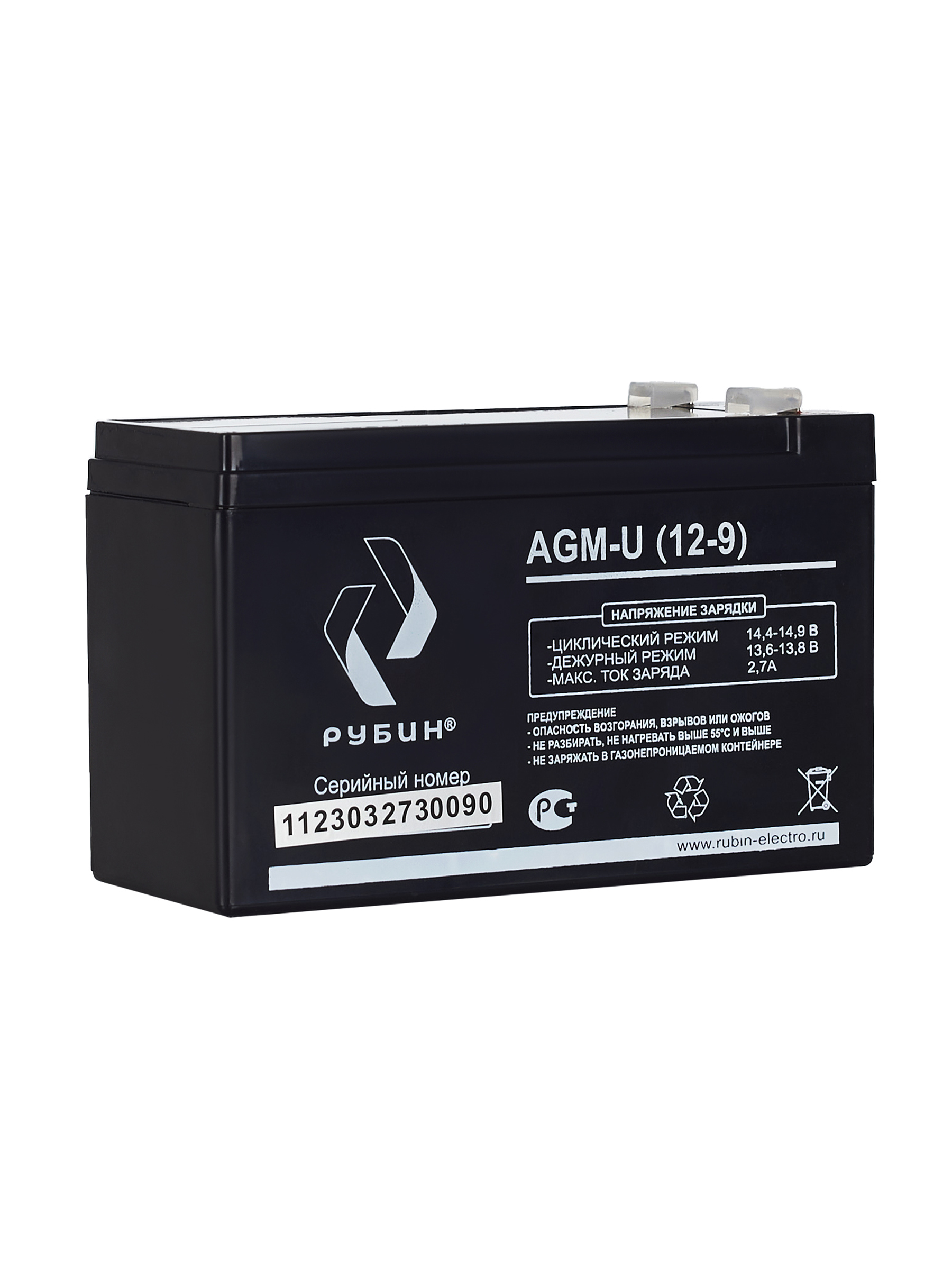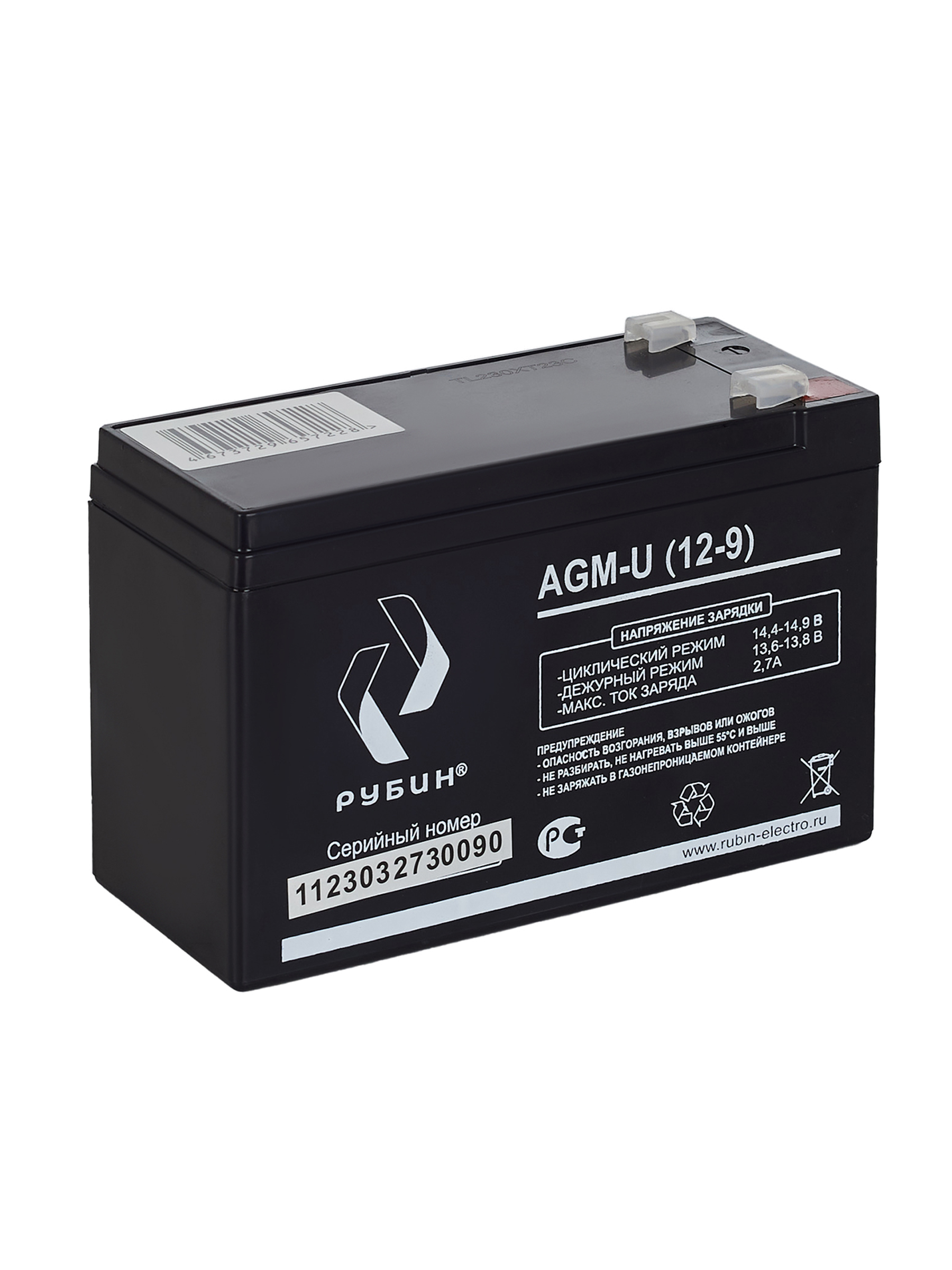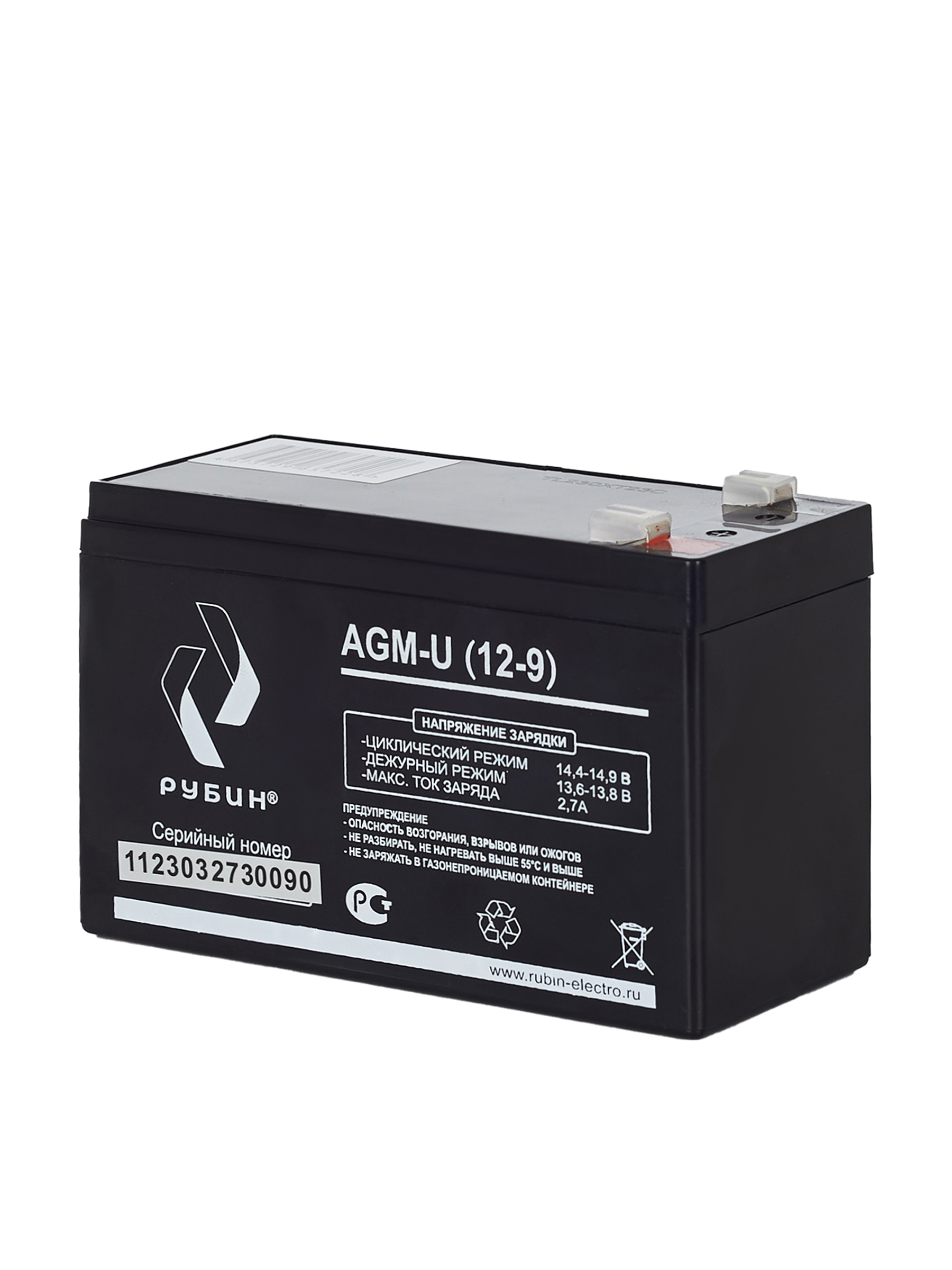 Аккумуляторная батарея Рубин 12V 9Ah AGM (2.3kg) Батарея для источника бесперебойного питания (АКБ для ИБП и инверторов) Свинцово-кислотные аккумуляторы РУБИН созданы по технологии AGM, с абсорбированным электролитом. Аккумуляторы являются не обслуживаемыми, герметичными, а образующийся газ рекомбинируется. Корпус аккумуляторов РУБИН выполнен из высокопрочного ABS пластика, что вкупе с технологией AGM обеспечивает высокую устойчивость к возгоранию и взрывобезопасность. СФЕРЫ ПРИМЕНЕНИЯ: - Источники бесперебойного питания - Источники резервного энергоснабжения - Системы контроля и доступа - Аварийные и световые системы тревожного оповещения - Системы безопасности - Пожарные системы - Переносные и портативные приборы - Различные области приборостроения - Накопители солнечной и ветровой энергии Аккумуляторы обладают низким саморазрядом (до 2%). Рабочее напряжение 12 V. Оборудование присоединяется к аккумуляторам с клеммами F2. Срок службы АКБ зависит от количества циклов, глубины разрядов, температурного режима, напряжения заряда и других факторов. Если АКБ не эксплуатируется, рекомендуем заряжать АКБ по крайней мере раз в полгода. Эта мера нужна для «тренировки аккумуляторных пластин чтобы не было окисления» Гарантийный срок эксплуатации изделия устанавливается в размере 12-ти календарных месяцев со дня продажи. Перед использованием АКБ РУБИН для оптимизации работоспособности рекомендуем провести четыре цикла разряда/заряда. Аккумуляторная батарея Рубин 12V 9Ah AGM отвечает всем международным стандартам безопасности! Так же зарядное устройство может использоваться как : аккумулятор для детского электромобиля, аккумулятор для детского мотоцикла, аккумулятор для детского квадроцикла, аккумулятор для медицинского оборудования, аккумулятор для пожарной сигнализации, аккумулятор для аварийного освещения, аккумулятор для котла.