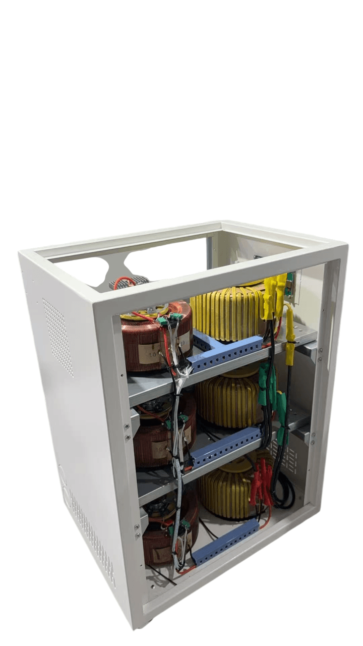 Электромеханический стабилизатор напряжения «Рубин ЭМ» — стабильность для вашей сети. В условиях постоянных колебаний и нестабильности трехфазных сетей (380 В) надежное оборудование требует исключительно чистого и стабильного питания. Электромеханический стабилизатор «Рубин ЭМ» создан для безупречного поддержания напряжения в строгом соответствии с ГОСТ 13109-97, обеспечивая максимальную защиту от любых аномалий: скачков и провалов напряжения электрических помех и высоковольтных импульсов. Этот стабилизатор рассчитан на непрерывную, круглосуточную работу даже в условиях экстремально длительных и значительных отклонений входного напряжения. Его сердцем является проверенная временем электромеханическая система, обеспечивающая высочайшую точность и бесперебойность функционирования. Ключевые преимущества и особенности: ➤ Высокоточное регулирование напряжения Плавное и точное корректирование напряжения без искажения формы сигнала. Электромеханический принцип действия гарантирует высочайшую точность стабилизации (погрешность всего ±2%), что критически важно для чувствительного лабораторного, медицинского и измерительного оборудования. ➤ Идеальная синусоидальная форма выходного напряжения В отличие от некоторых импульсных преобразователей, наш стабилизатор не вносит в сеть помех, искажений и гармоник высшего порядка. На выходе вы получаете идеально чистую синусоиду, гарантирующую корректную работу даже самых требовательных электродвигателей и трансформаторов. ➤ Широкий рабочий диапазон входных напряжений Способен эффективно работать в самых «просаженных» и нестабильных сетях, стабилизируя напряжение при глубоких падениях и значительных превышениях, где другие типы стабилизаторов бессильны. ➤ Информативный сенсорный дисплей Большой цветной дисплей обеспечивает удобное управление и наглядный контроль над всеми параметрами сети: входным и выходным напряжением током нагрузки состоянием системы и актуальными режимами работы.